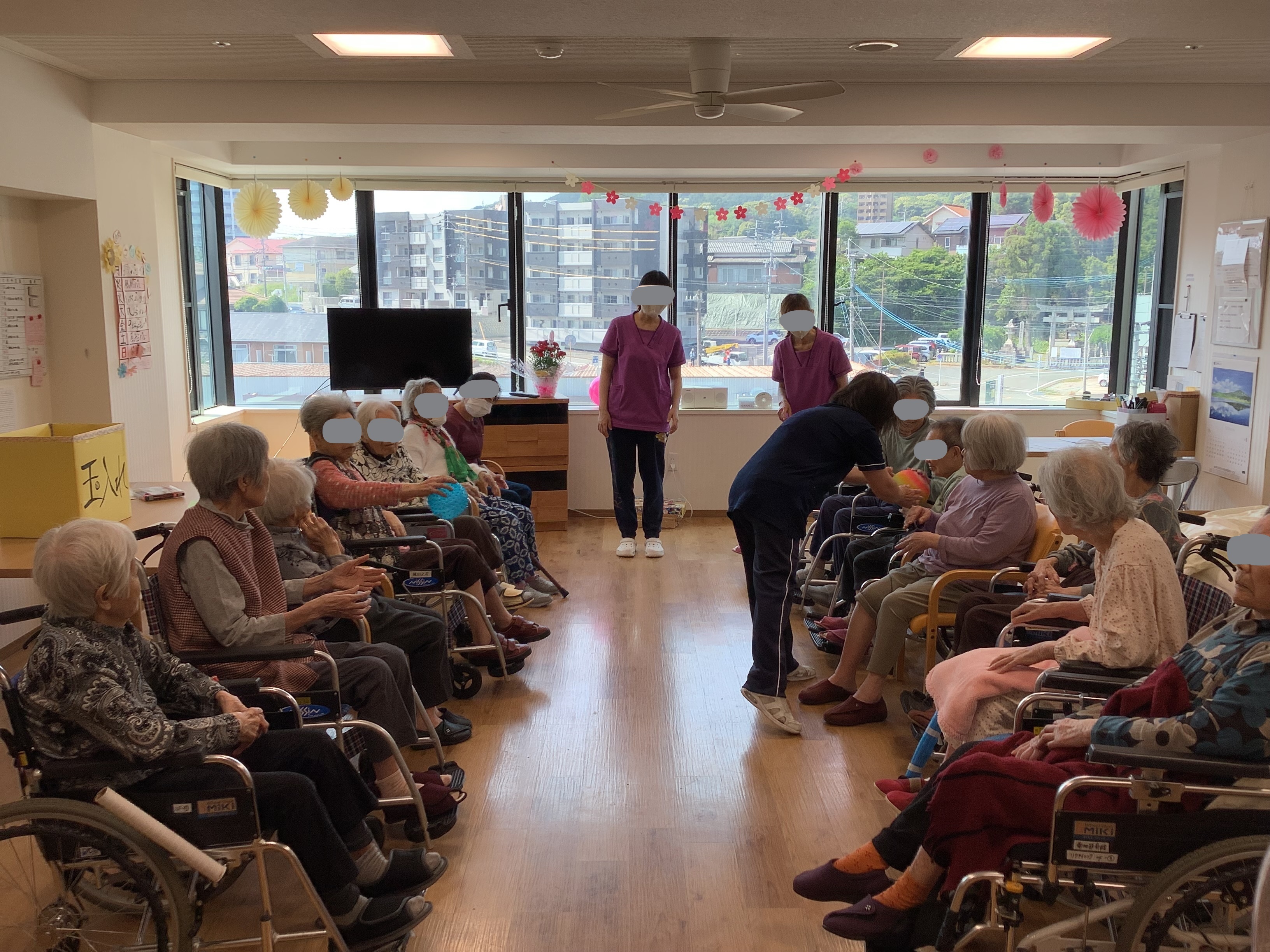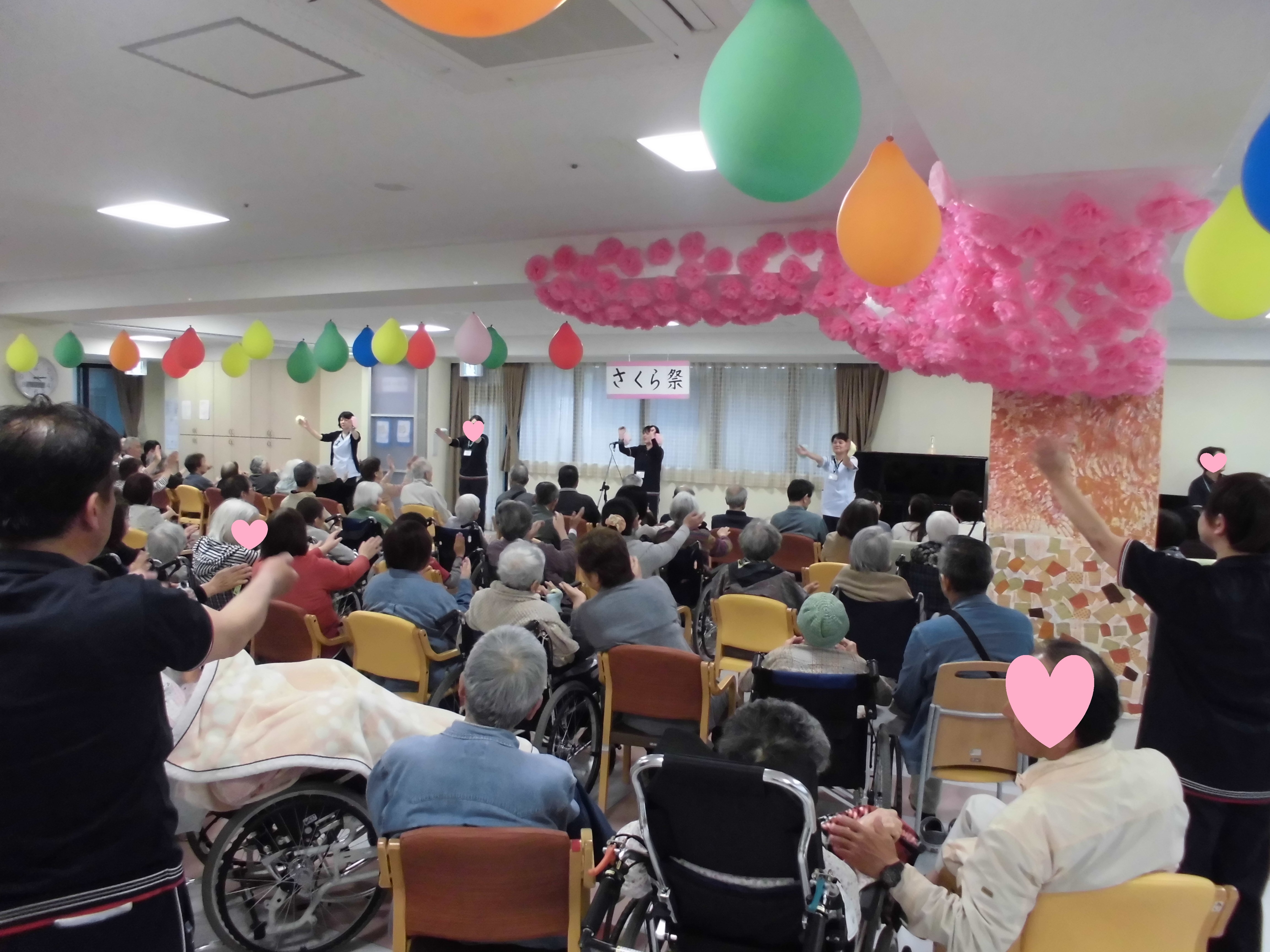 特別養護老人ホーム城山之荘も2年目の春を迎え、4月14日(土) 利用者・ご家族の皆様と職員同士の交流を深める場として「第2回 さくら祭」を開催いたしました。 リズム体操・玉入れゲーム大会で盛り上がりました。皆様が楽しく 過ごされた1日でした。