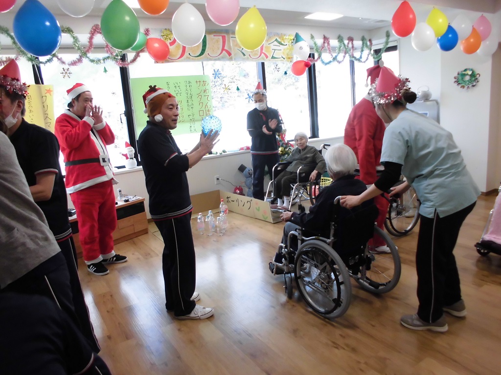 特別養護老人ホーム 城山之荘では、12月22日(金)にクリスマス会をしました。各フロアでそれぞれ違ったクリスマス会。しかけ絵本の読み聞かせがあったり、スタッフと利用者の皆様で合唱をしたり、ボーリング大会でも大盛り上がりでした。 どの階でも、皆様が楽しそうにしておられ、素敵なクリスマス会になりました。